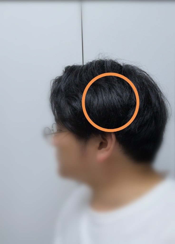 頭の横側、簡単に言うと耳の上です。