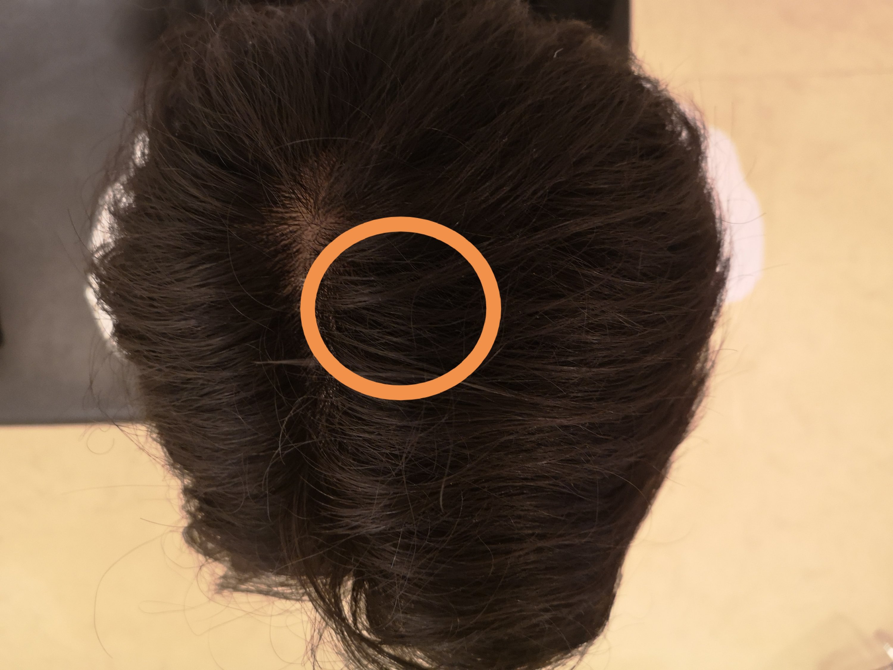 頭のてっぺんにあるここを優しく、じんわり人差し指で8秒押してみましょう。