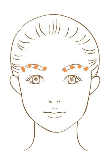 それを眉毛の上を4分の1ずつの間隔で押します。