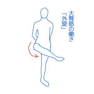 他にも足全体を外側方向に回転させる、足を開く方向に回す動きを担っています。