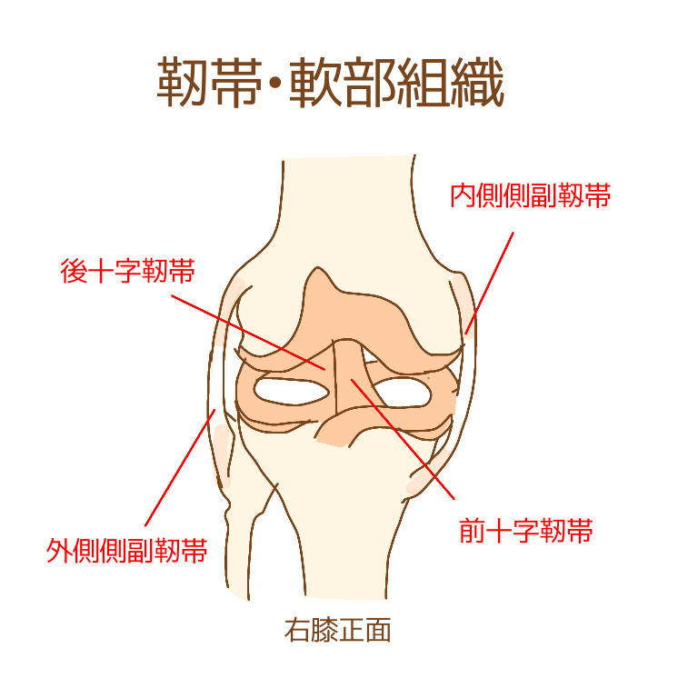 膝関節には沢山の靭帯があります。靭帯は骨と骨をつなぐ役目があります。